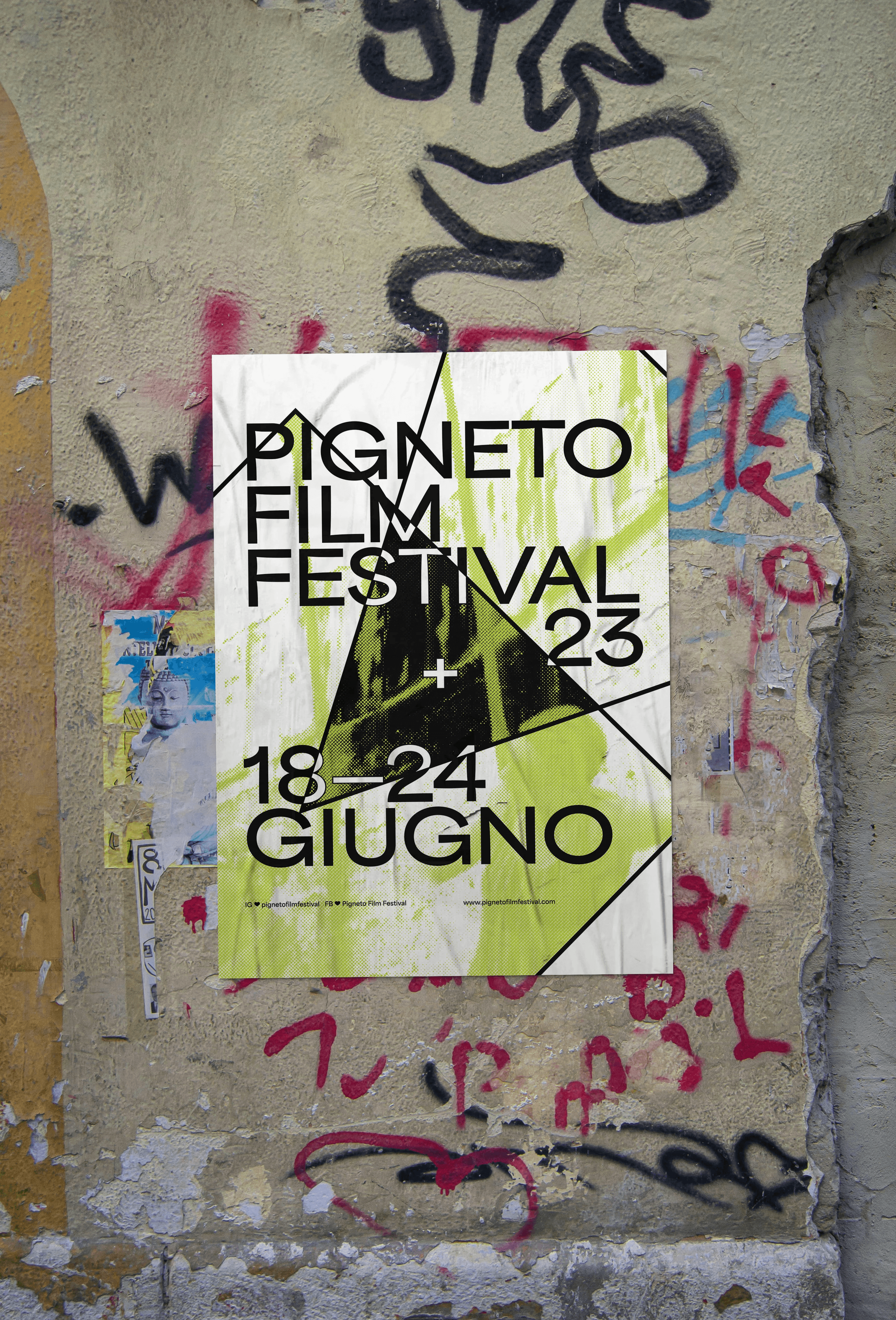In the design for the sixth edition of the PIGNETO FILM FESTIVAL, I incorporated the icon of a film camera as a clipping mask for iconic photos of the neighborhood. This visual element creates an intriguing window, framing the authentic context of the festival. With this choice, I aim to tangibly connect cinema, the neighborhood, and the audience, making the festival communication engaging and memorable.