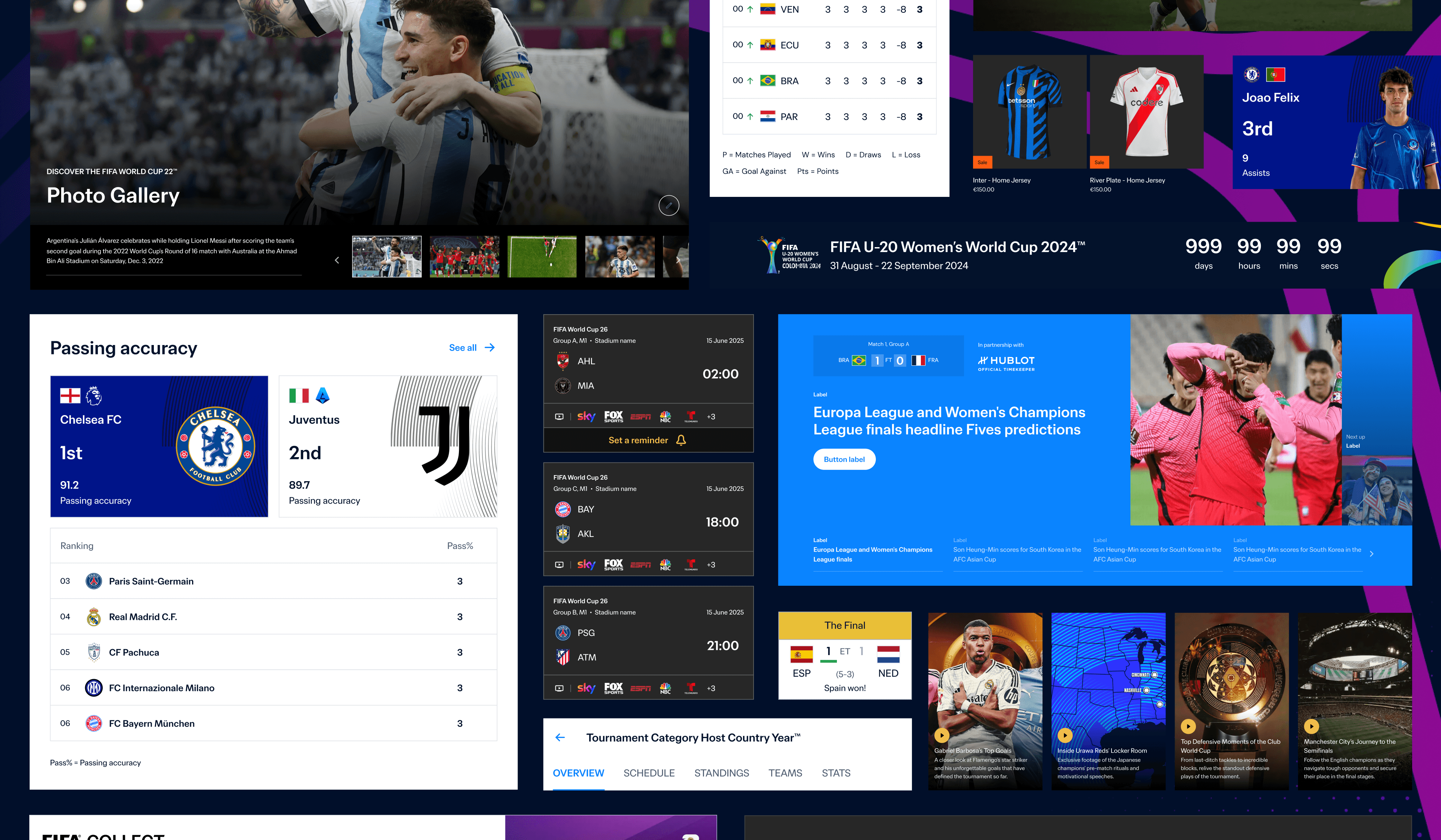 In parallel, I contribute to experience and concept design, exploring how users discover and follow tournaments, how data and editorial content can dynamically adapt to context, and how future events such as the Club World Cup 2025 and the FIFA World Cup 2026 can be supported through flexible, reusable patterns.